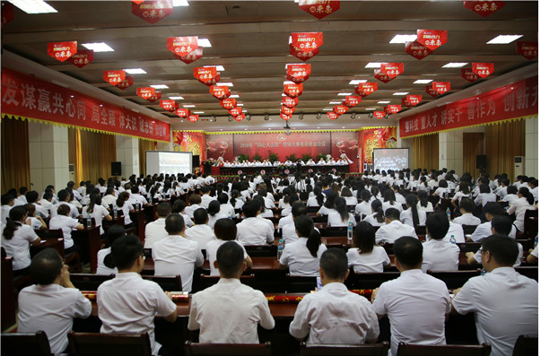 2018年9月1日,仁和集團隆重召開2018年“同心大會戰”營銷大賽全國電視電話會議。樟樹市委副書記尹志來、副市長晏衛華蒞臨會議,楊文龍董事長和集團董事會成員出席會議,公司5000多名各級員工在樟樹主會場和全國25個省會城市分會場參加了會議。