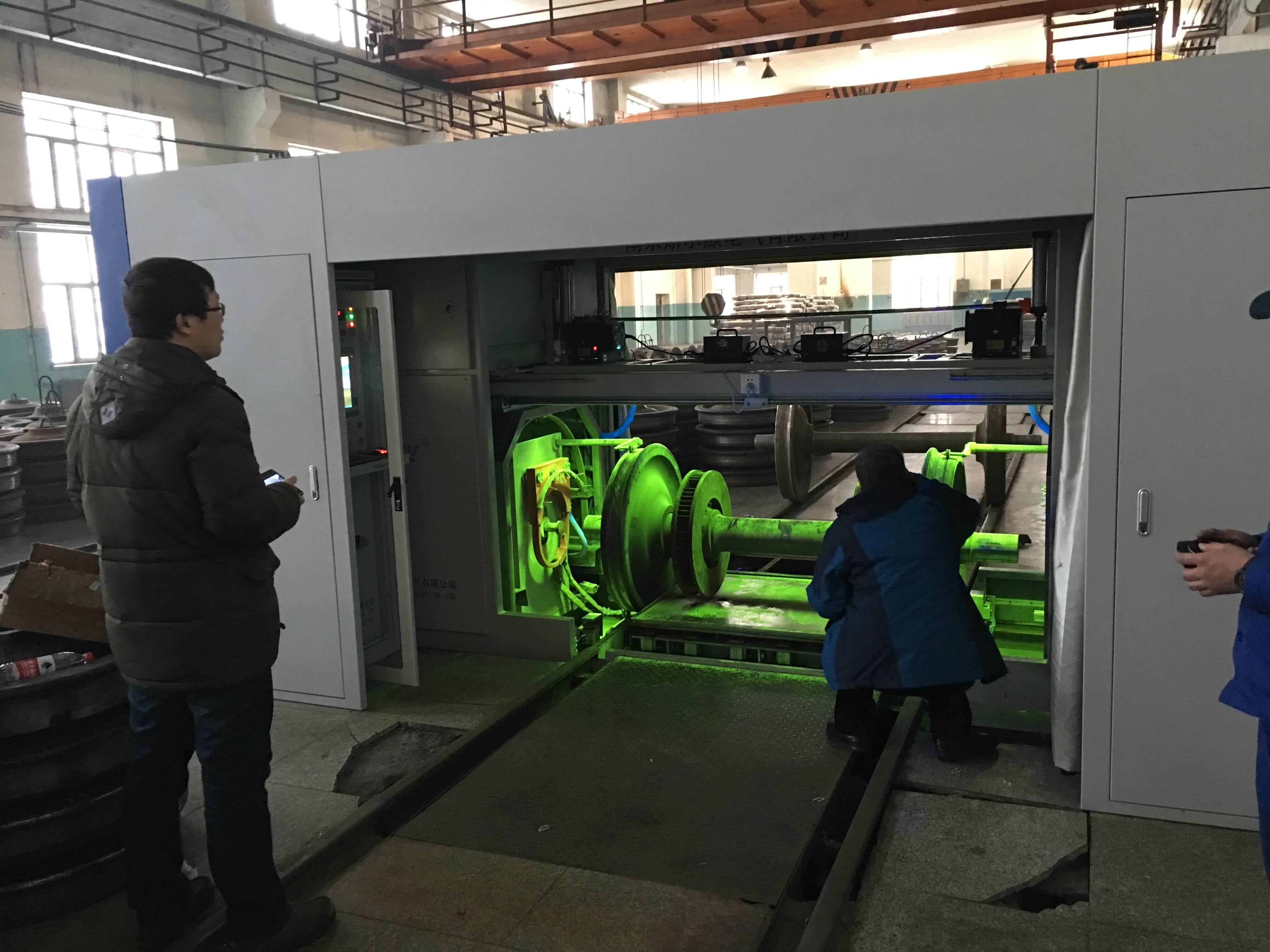CJW-3000型微控車輪軸磁粉探傷機專家組測試現(xiàn)場